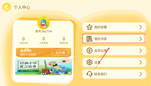 2、点击底部菜单栏的“我的”选项,然后在个人中心页面找到“我的书架”入口。
