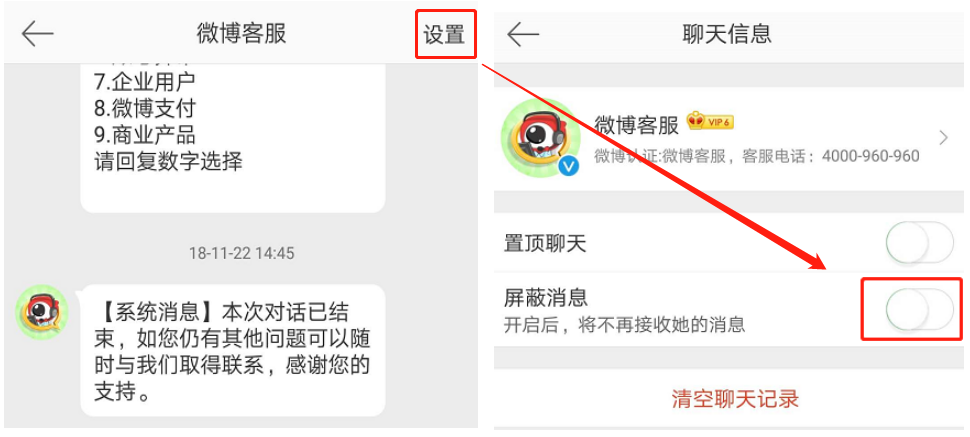 手机端:在私信界面,点击右上角的“设置”,将“屏蔽消息”开关打开即可。