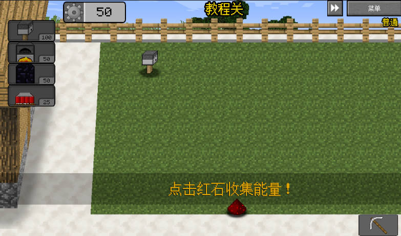 3、与植物大战僵尸玩法差不多,当红石能量达到后就可以购买相对应的器械攻击僵尸。