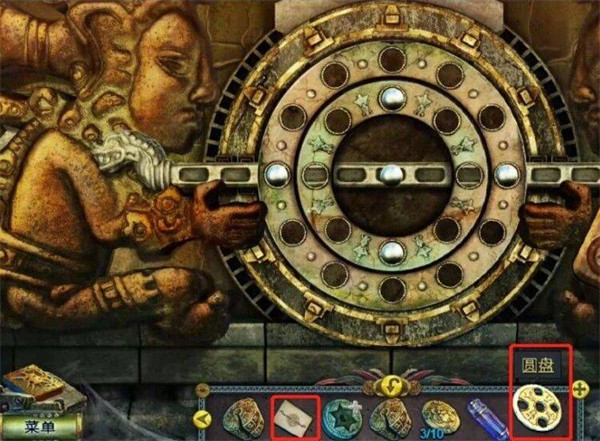 2、点击后,将圆盘和图纸放进去。放完后就要开始过排列圆球的小游戏了,可以先转动中间的圆盘。