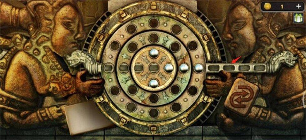 15、移完后,再将横杆往左推两格,推完后转圆盘的小游戏就通过了。