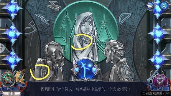 拼完图之后就可以得到下图这个破解提示,记住相应每一个颜色对应的形状以及里头十X的颜色。