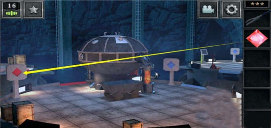 将红色宝石按放进相应的机关里头,这时就会出现一条路,点击通过这条路到另外一个平台。