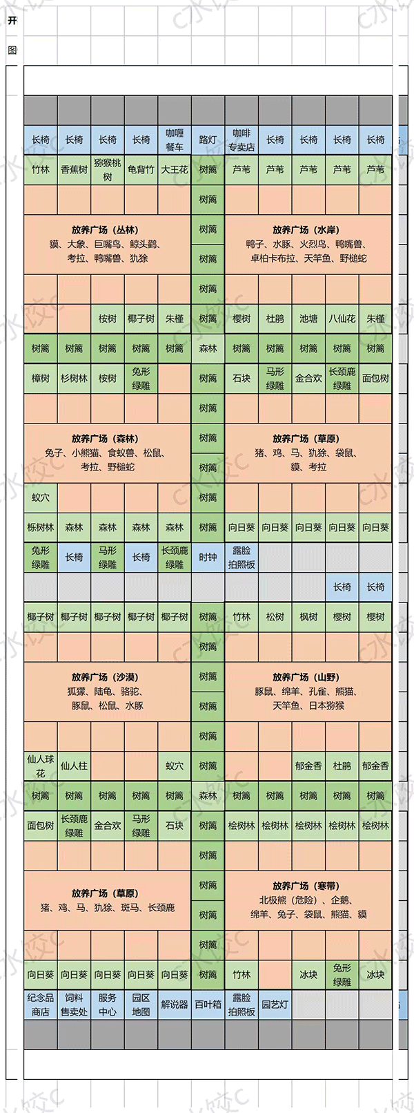 该布局包含全56个特别区域,饲养圈生态都符合动物偏好。
