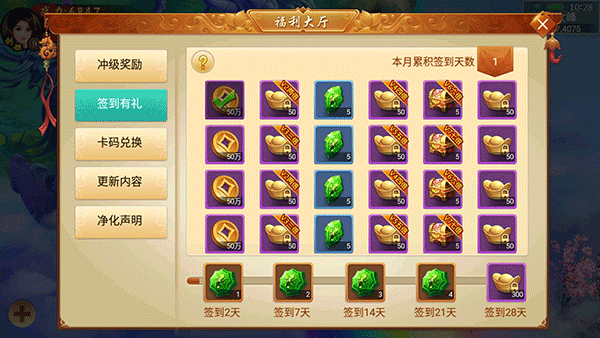 4、左上角福利大厅每天可以签到,达到一定天数可以领取绑定元宝。