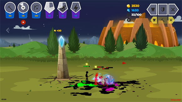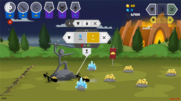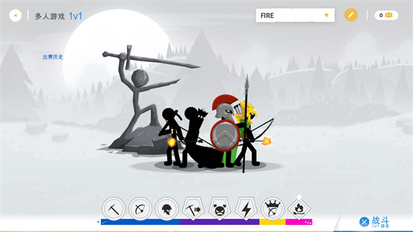 1、玩家将亲临激烈刺激的战场,指挥你的火柴人勇士进行作战,而且游戏中有着各种火柴人士兵可供训练;