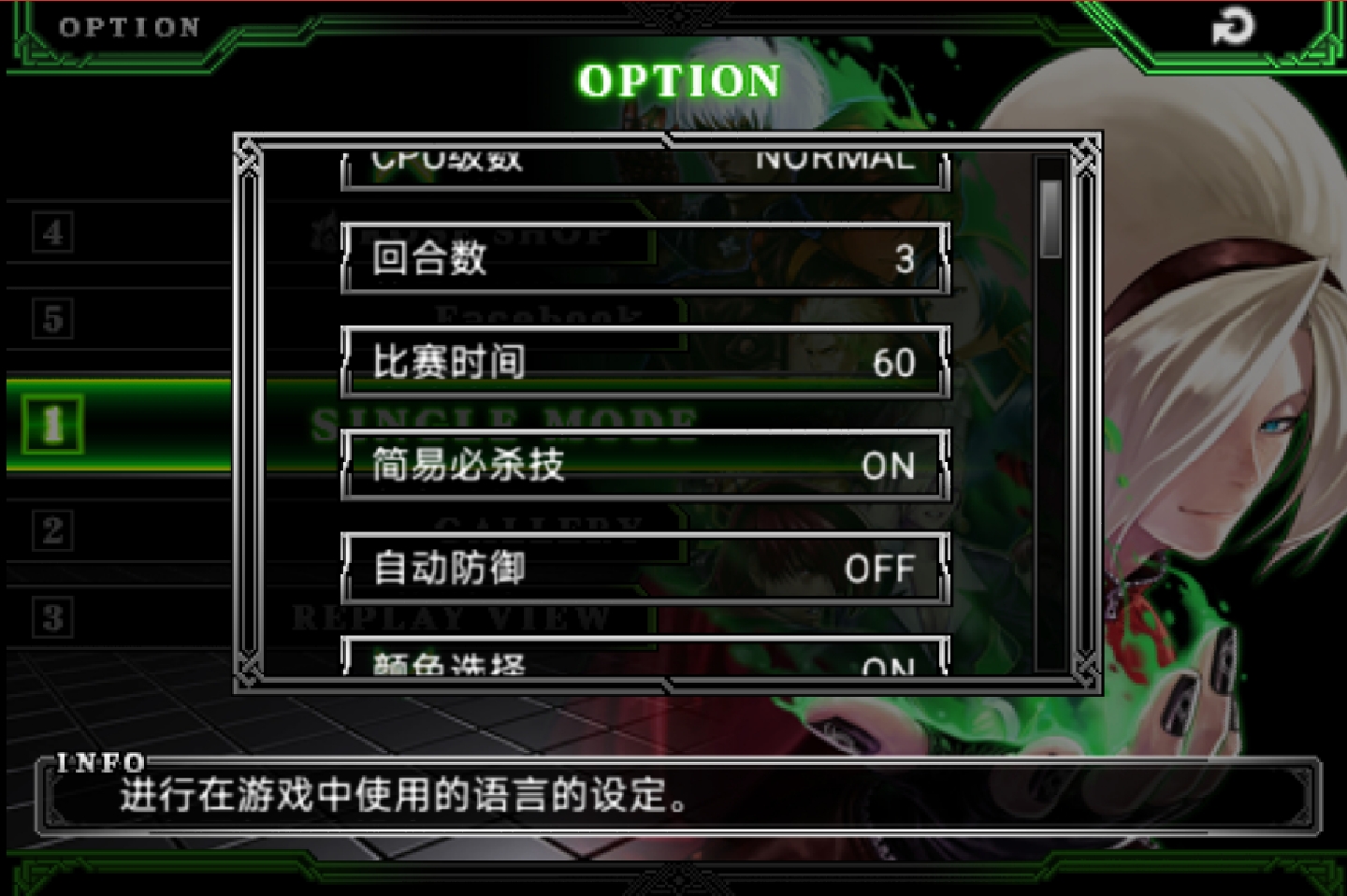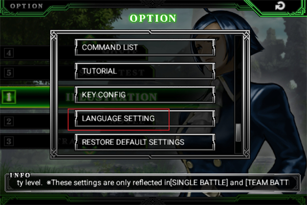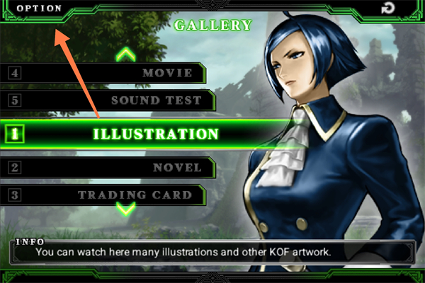 1、打开拳皇2012手机版,点击上方的【OPTION】进入设置选项。