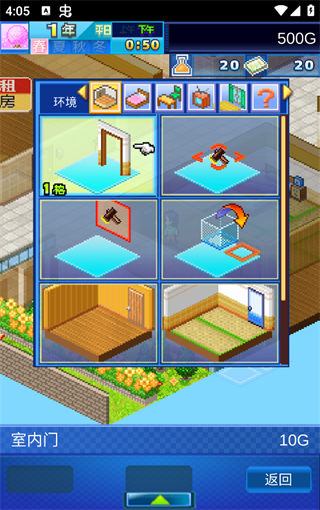 点击“设置”,你可以为公寓添加各种家具和设施,例如门、床、桌子、电视等,帮助提升公寓的舒适度和居民的满意度。