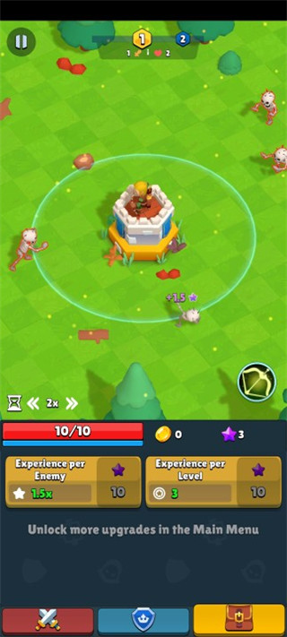 2、在神秘的魔法世界中,击退邪恶怪物的入侵,通过提升弓箭手的攻击力,对抗更强大的敌人;