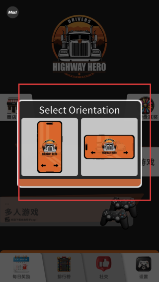 1、游戏开始前先在游戏界面选择手机屏幕显示方向(竖屏或横屏),确定后进入游戏。