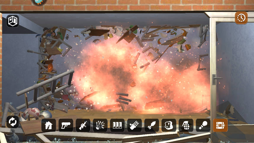 玩家可以使用多种破坏工具,如锤子、斧头、手榴弹等来破坏房间,不同的工具会产生不同的伤害效果。