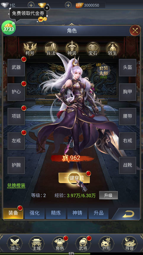 3、游戏内装备室提升战斗的最直接方式,当闯关遇到困到记得来强化或者镶嵌宝石