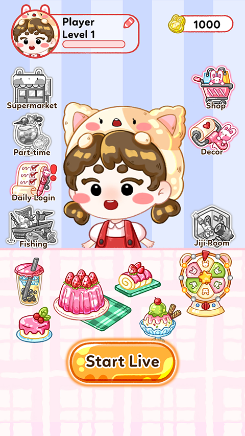 3、玩家可以根据自己的喜好选择果冻的口味、形状、颜色,以及直播的场景和背景音乐。