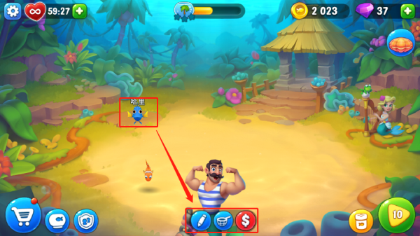 1、下载游戏安装至手机,先用海绵球清洁水族箱