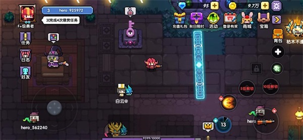 我的勇者vivo版是roguelike地牢射击游戏,游戏采用了经典的像素风格,并将整体画面设计也按卡通风格为主,让玩家体验无比刺激的动作冒险之旅。我的勇者vivo版游戏里有着非常多的内容,玩家可以尽情体验秘境探索和高难副本,以及深渊狩猎等多样化特色玩法。在我的勇者vivo版游戏里玩家既可以去收集强力武器与可靠的防具装备自己的角色,然后使用独特技能及神秘符文去击败各种各样的敌人;也可以与游戏中结识挚友并肩同行,共享精彩冒险征程时光。