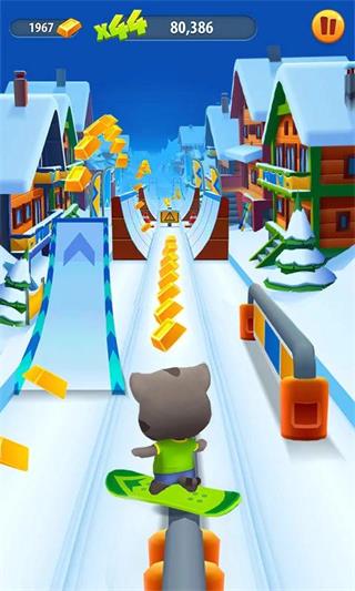 汤姆猫跑酷正版是一款3D卡通跑酷游戏,游戏很注重美学体验的3D卡通跑酷玩法,玩家控住汤姆猫在地图上一直跑着,并躲开突然冒出的各种阻碍,直到汤姆猫被阻碍挡住,才会游戏失败。汤姆猫跑酷正版游戏操作简单直观,玩家无需复杂的操作,只要通过滑动屏幕就可以控制汤姆猫完成各种跳跃和翻滚,并且通过左右滑动屏幕让汤姆猫达成左右移动的动作,以此躲开阻碍或收集金币,非常有趣。
