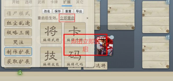 8、覆盖后返回桌面进入无名杀点立即重启。