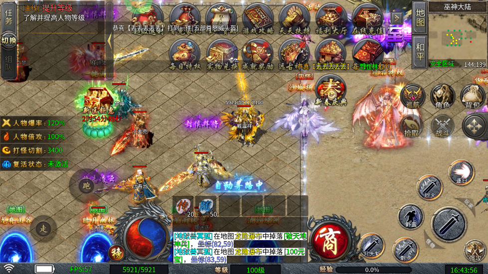 2. 野外刷怪爆率大幅提升,惊喜装备随时掉落。