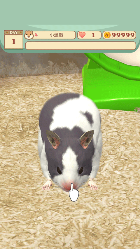 3、对着小仓鼠双击屏幕可以与它进行互动,能够获得硬币和亲密度。