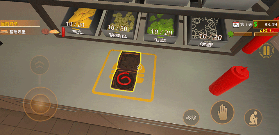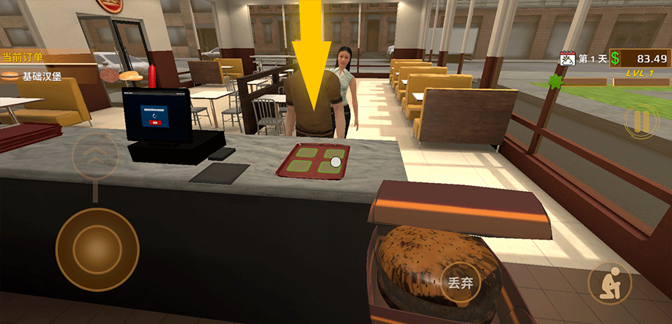 7、最后,将完成的汉堡装盘端到顾客面前,即可完成当前订单。收下顾客的满意笑容后,就能继续接待下一位食客啦!
