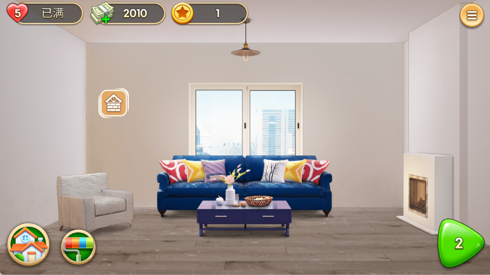 4、通关获得的奖励可用于装修,从壁纸、地板、沙发、阳台到泳池,几乎每个细节都能自由选择与搭配。