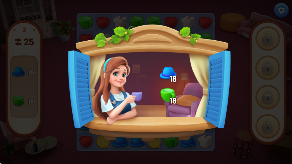 1、游戏通过完成三消关卡,获取金币与材料,用这些奖励一点点装饰、翻新你的家。