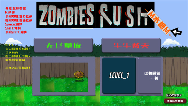 1、在本站下载安装好游戏后,打开进入,左侧可以看到玩法相关介绍,选择无尽草原或者是牛牛戴夫模式,开始第一关卡;