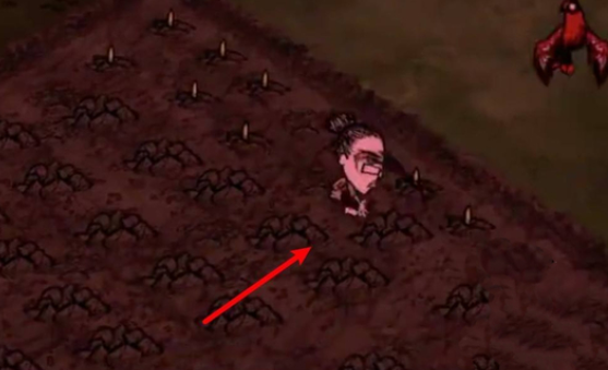 2、二层洞穴的入口通常在离一层洞穴入口不远的地方,而且一定会有以下特征:在遍布矿石的土黄色地皮上面。周围一定被蜘蛛围绕。兔人和石头龙虾也住在旁边。