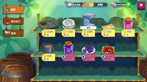3、解锁丰富新食谱与功能区域,持续拓展餐厅经营维度及互动娱乐内容。