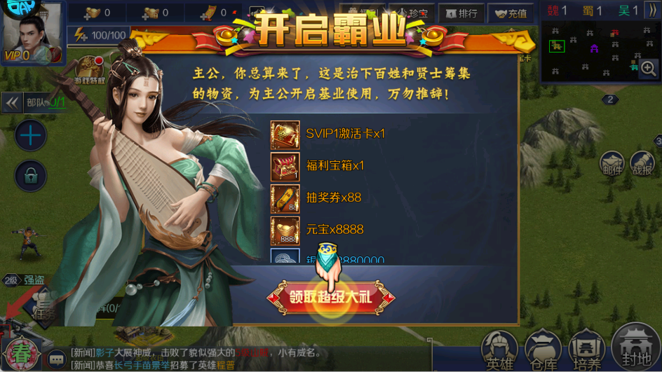 优先“领取超级大礼”,获取SVIP1激活卡、元宝等资源,为前期发展攒足资本。