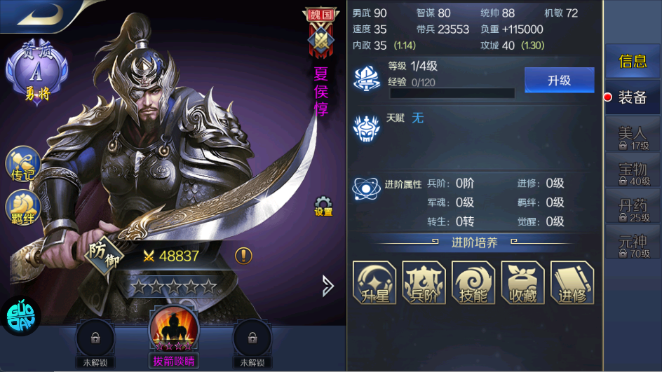 新手期优先升级初始武将夏侯惇,提升其等级与基础属性,作为前期开荒主力。