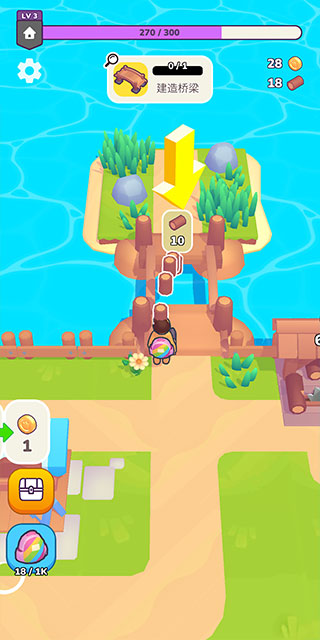 1、完成NPC任务获取金币与稀有建材,升级建筑强化岛屿生产力。