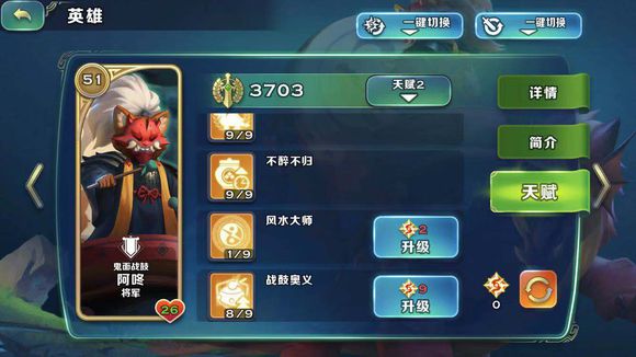 阿咚这个英雄的上线,可以说是极大的促进了现版本全民浣熊的情况。龙龟专精和不醉不归这两个技能,直接把龙龟的作用提升一个大台阶,导致现在在夺宝活动、工会战这种不能借兵的场景下,浣熊制霸。