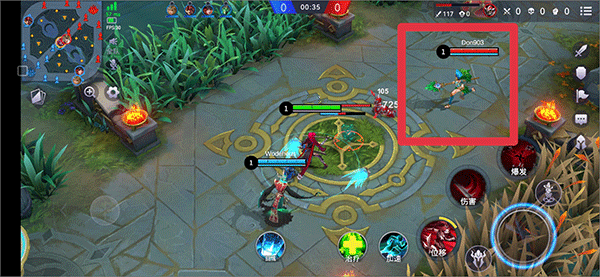 5、游戏开始时,通过左边屏幕控制英雄的移动,右边为普通攻击和专属技能,然后操控角色前往上中下路去带兵线并攻击敌方防御塔