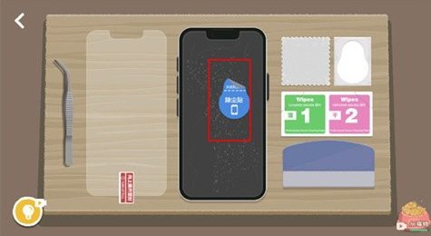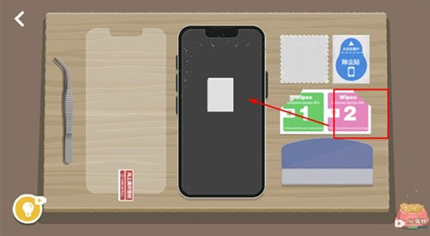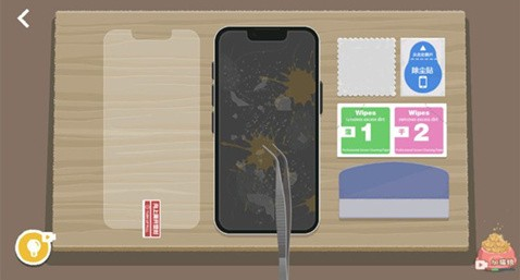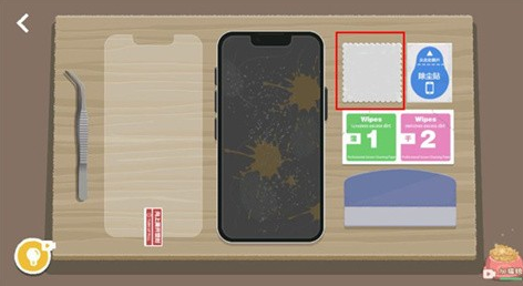 1、游戏开始后,使用镊子在手机边缘滑动,将碎掉的手机膜拿下来,碎片也要清理掉。