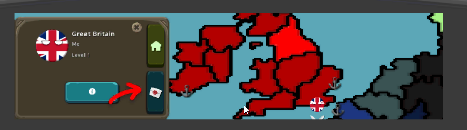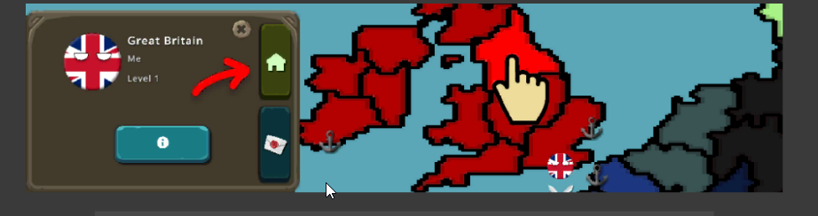 要进入一个国家,请点击一个友好地区,然后点击带有房子图标的按钮。