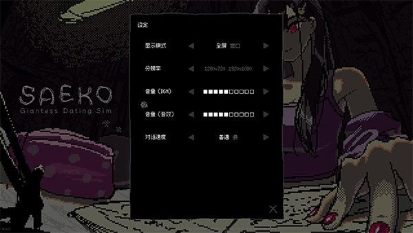 3、进入游戏主菜单点击设定,这里可以进行一些显示模式、音频及对话速度等游戏基础设置,完成后点击对话框右下角的关闭按钮;