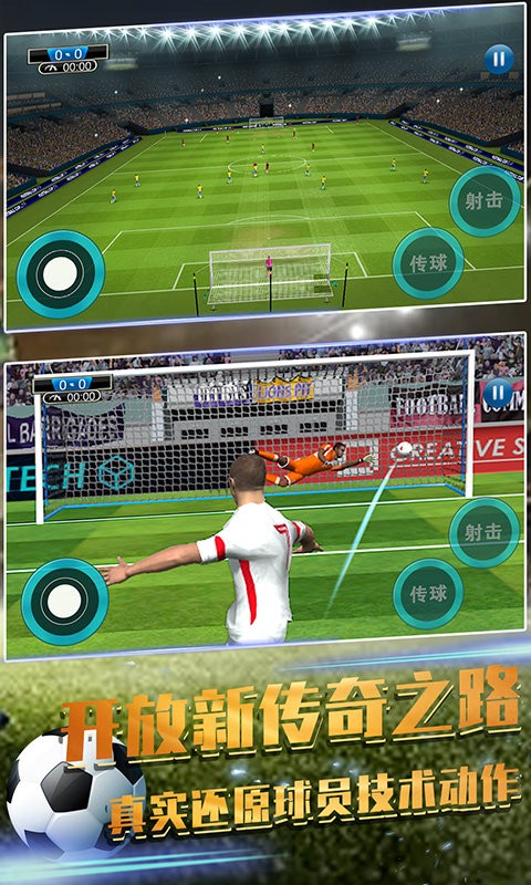 6、全新引擎打造的游戏画面和动作,流畅的足球飞行轨迹,数十个守门员的抛投动作,带给你最真实的足球拍摄。