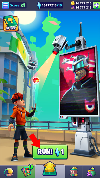 通过一次又一次的奔跑来提高你的分数,每一步都不会浪费,甚至在离线时!随着得分的增长,你将可以解锁新的道具和玩法更丰富的地区!