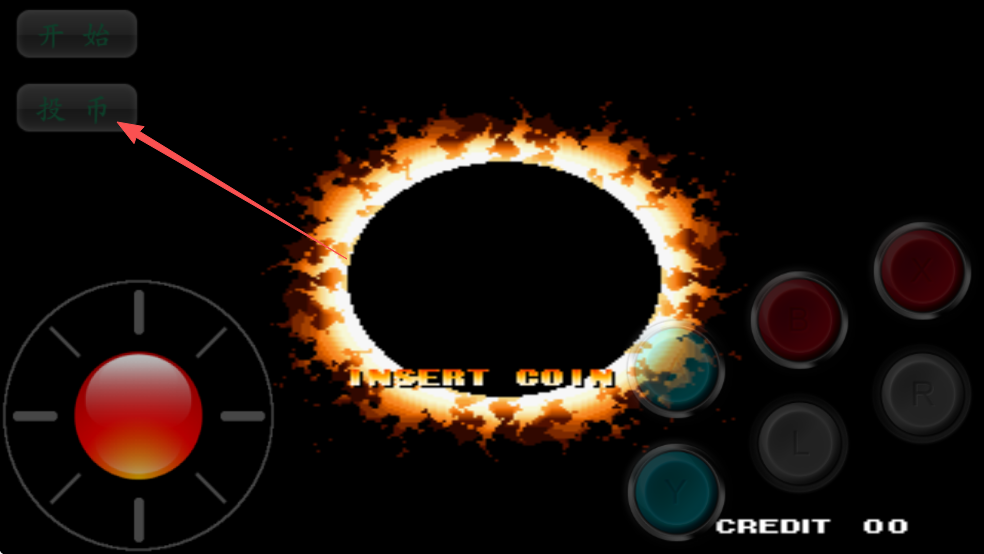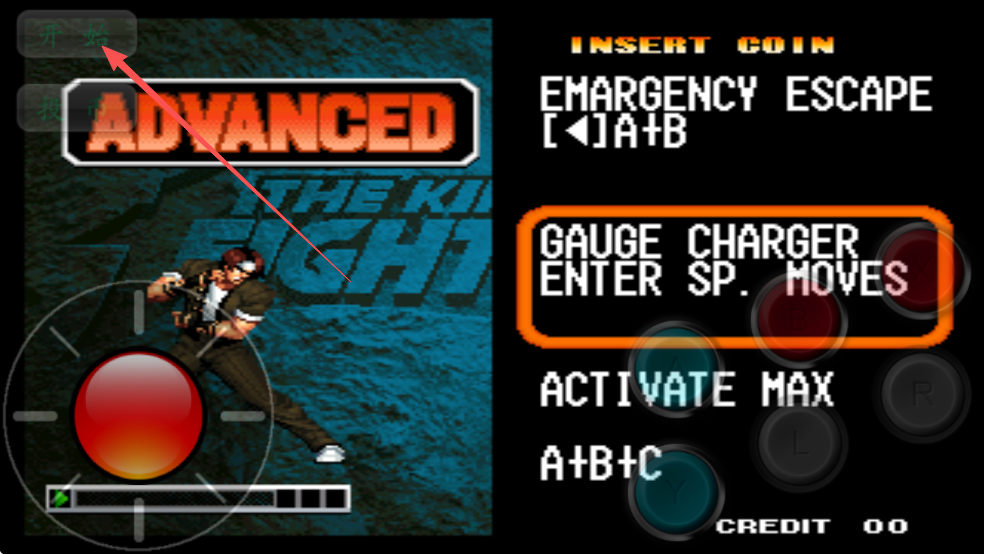 1、打开拳皇98单机版游戏,点击投币开始游戏