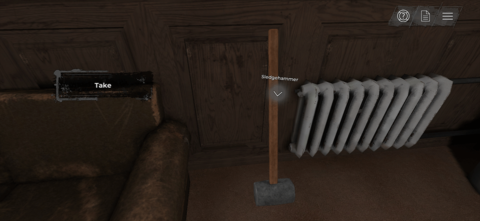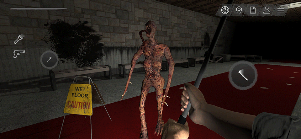 2、按键控制道具的切换使用和场景交互,右屏滑动转变视角,摇杆控制行走。
