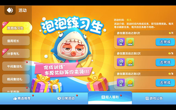 5、轻松上手且竞技性十足,既还原经典泡泡玩法,又创新加入百人演习模式。保留放置泡泡爆炸的经典操作,同时强调团队战术、道具运用与走位技巧,兼具休闲与竞技乐趣。