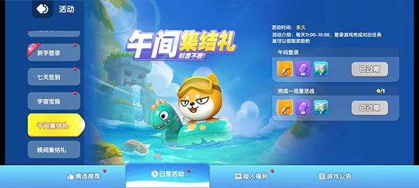 每天中午11:00-15:00,晚间19:00-22:00期间登录游戏完成对应任务即可领取奖励,每天领取限时登录宝箱,有概率获得高品质礼物。