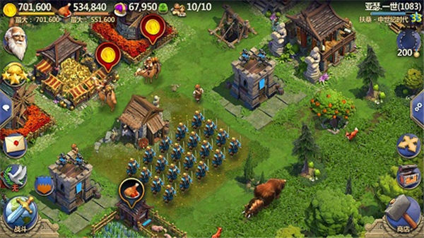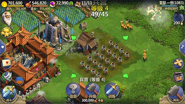 2、玩家可招募并培养步兵、骑兵、弓箭手等各具特色的作战单位,通过科学的兵种搭配与编组,建立起一支适应不同战况的精锐部队。