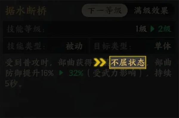 【不屈状态】:在不屈状态期间,部曲防御力提升