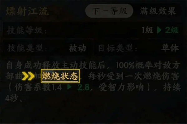 特性收益:鲁肃有概率对燃烧部曲施加易伤,小乔或吕蒙对燃烧状态的目标伤害提升