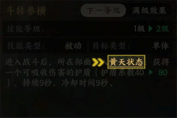 【黄天状态】:在黄天状态期间,获得一个可吸收伤害的护盾。