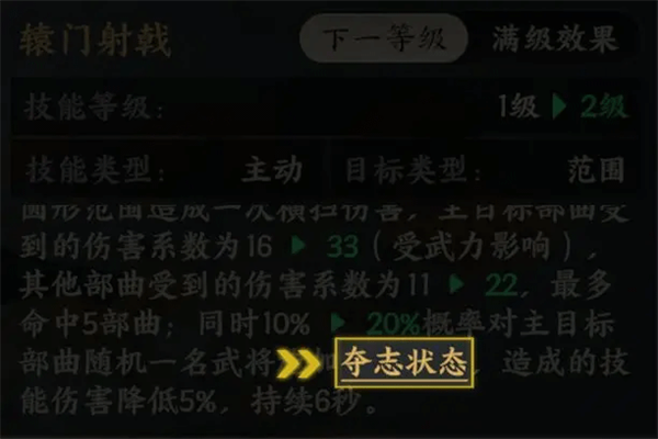 【夺志状态】:在夺志状态期间,敌方武将造成的所有技能伤害降低