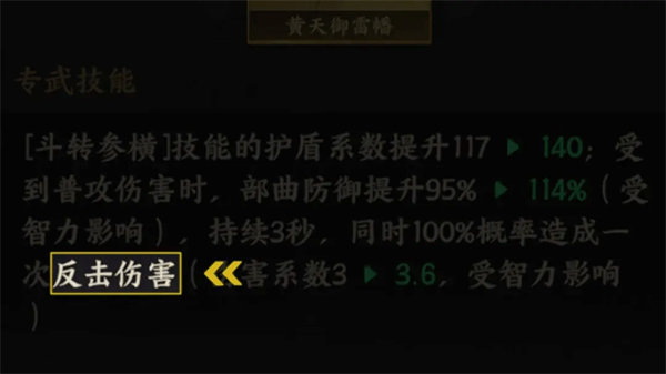 特性收益:张燕在坚毅状态下提升主动技能伤害