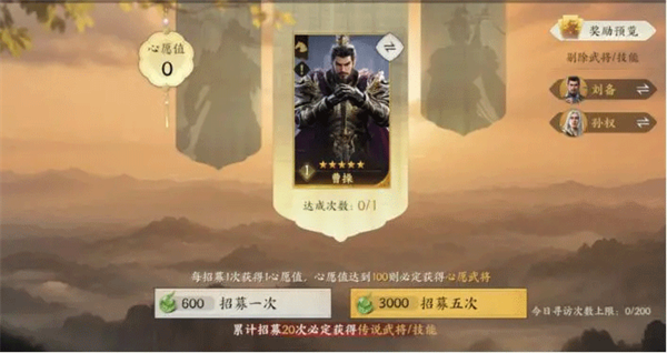 注:招募到心愿武将后应立即终止抽取,避免消耗后续保底次数。
